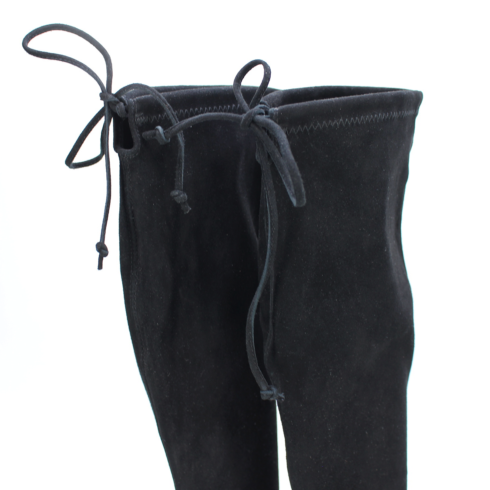 Stuart Weitzman Kneezie Black Suede Knee Heeled High City Boot
