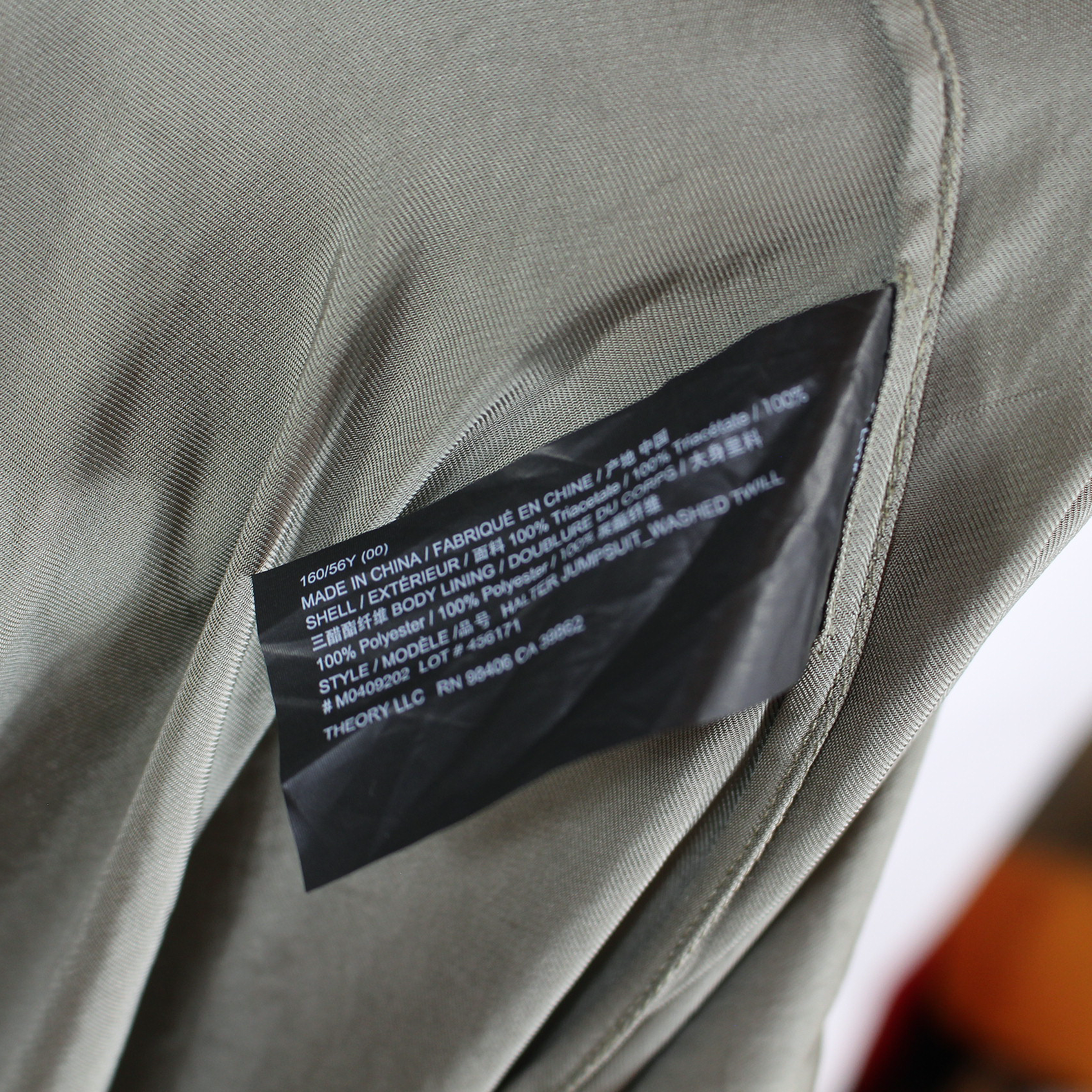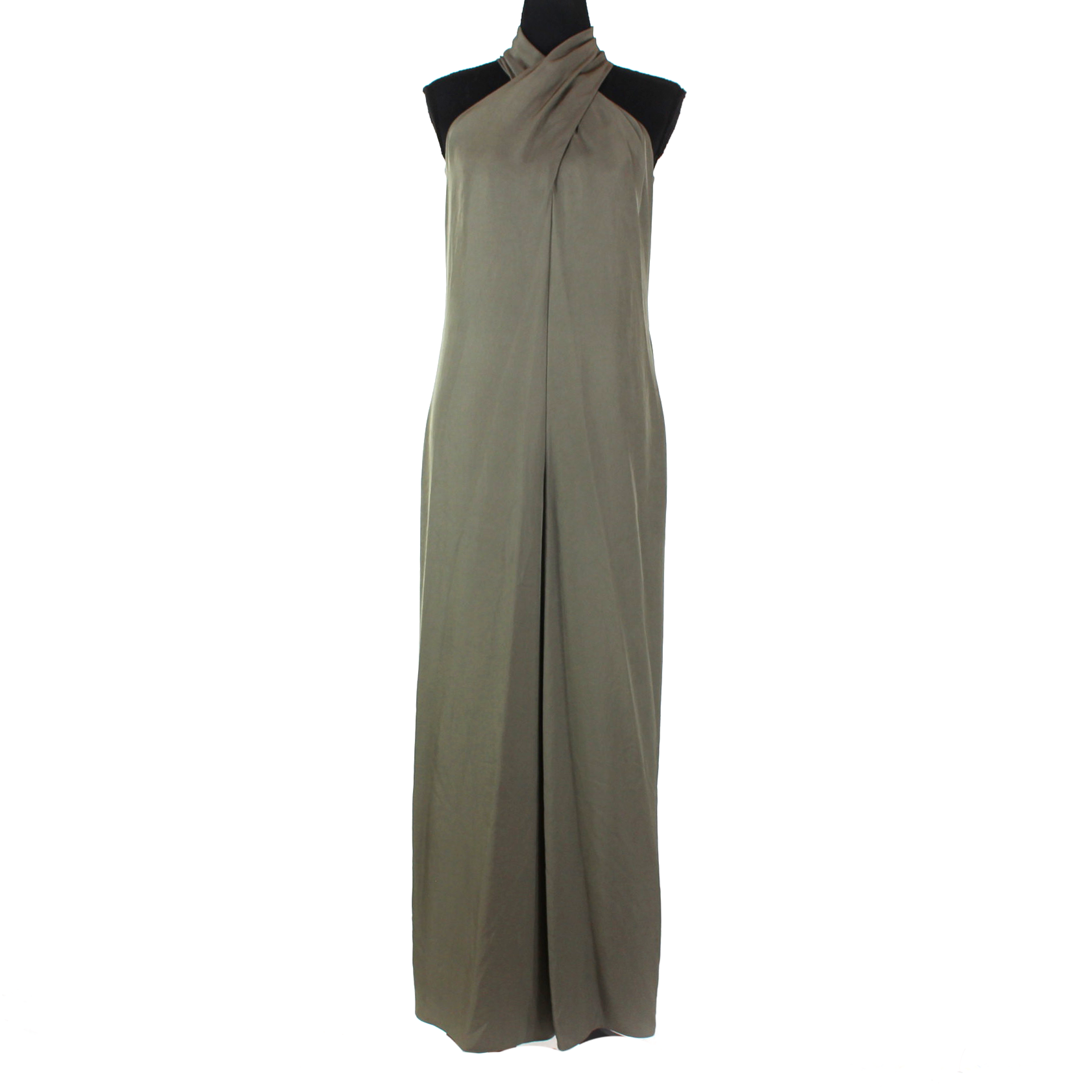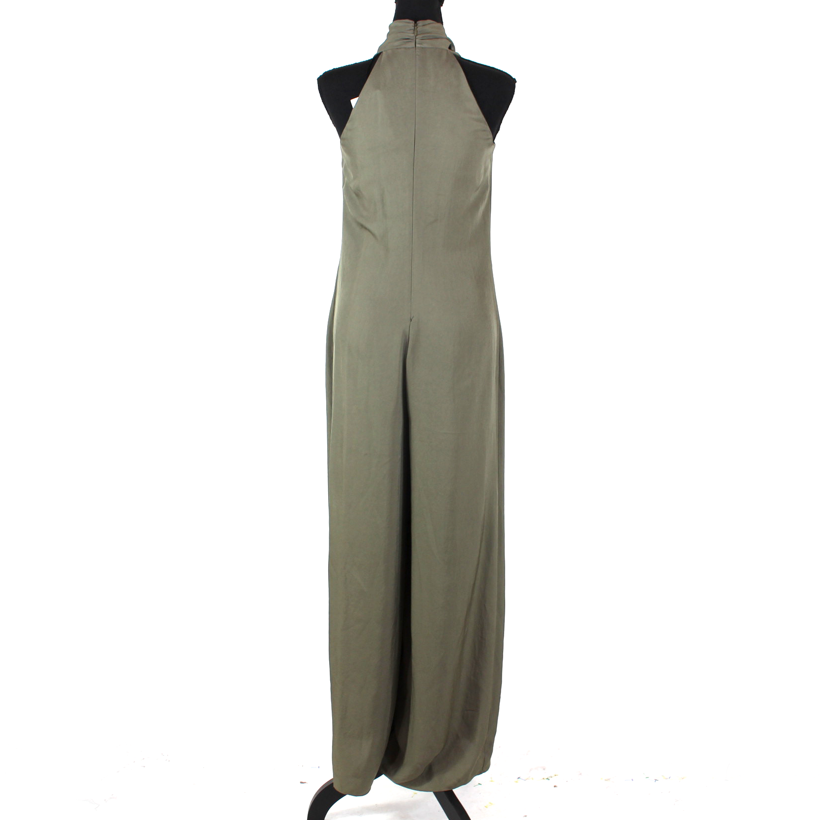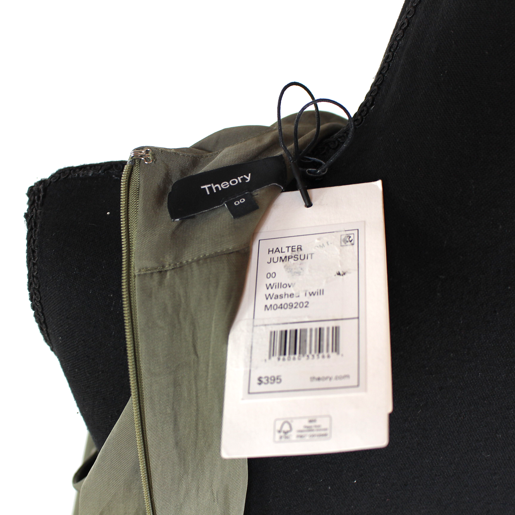 Theory Twisted Halter Willow Green Washed Japanese Twill Jumpsuit