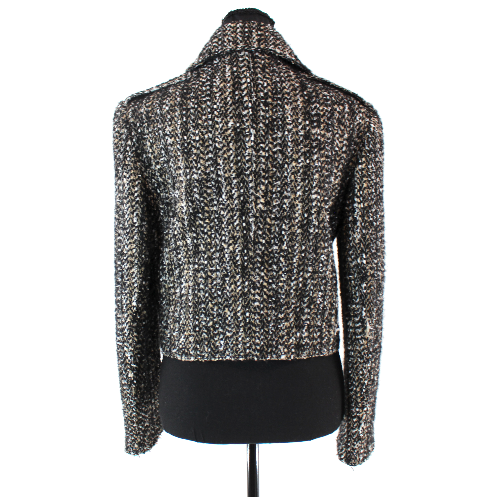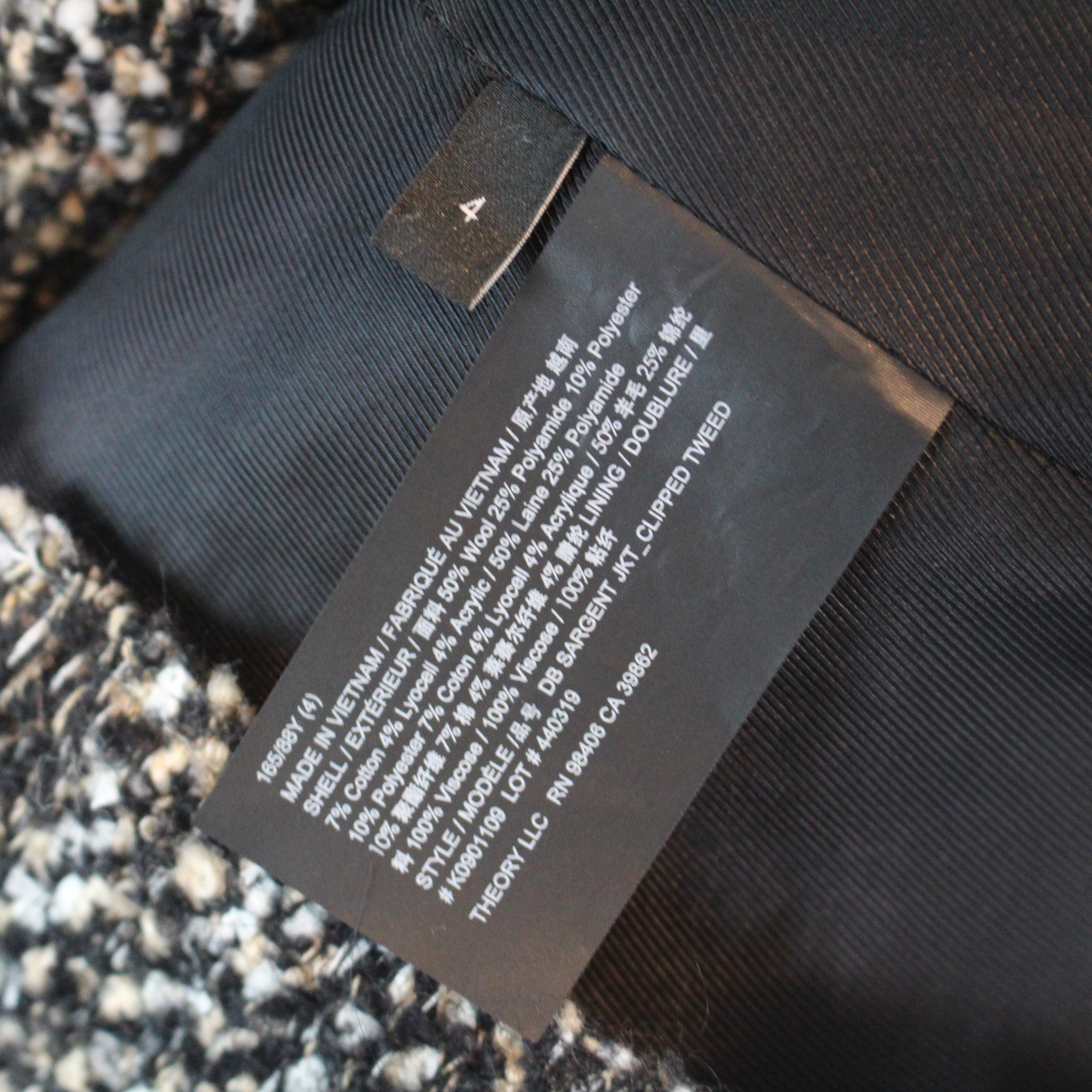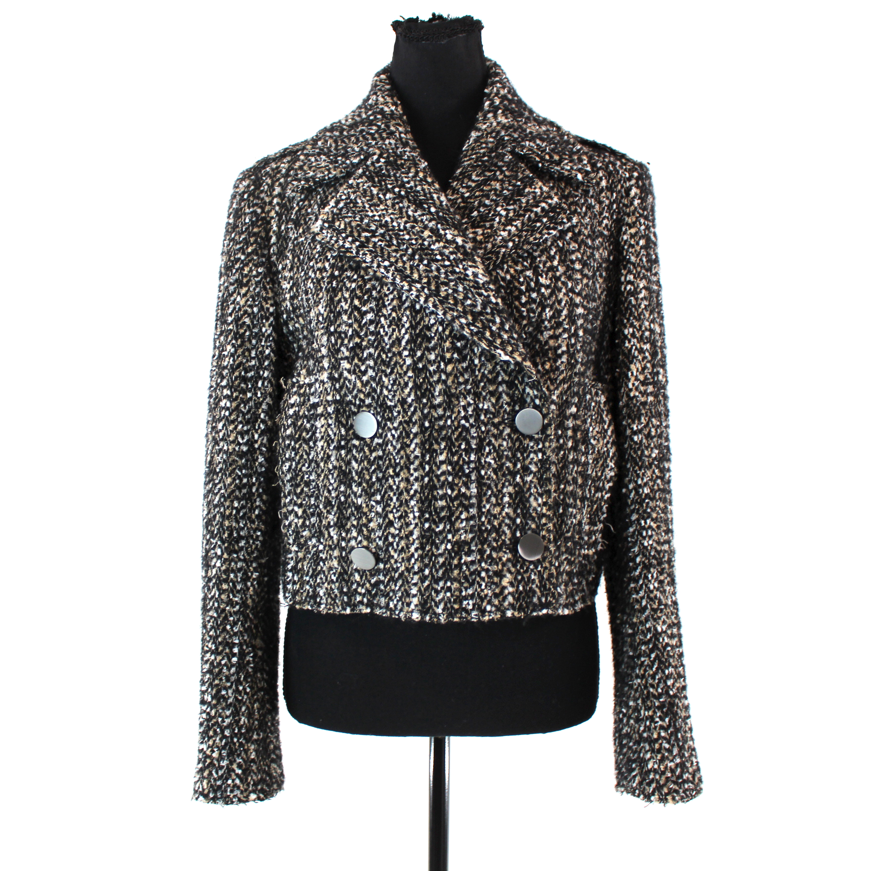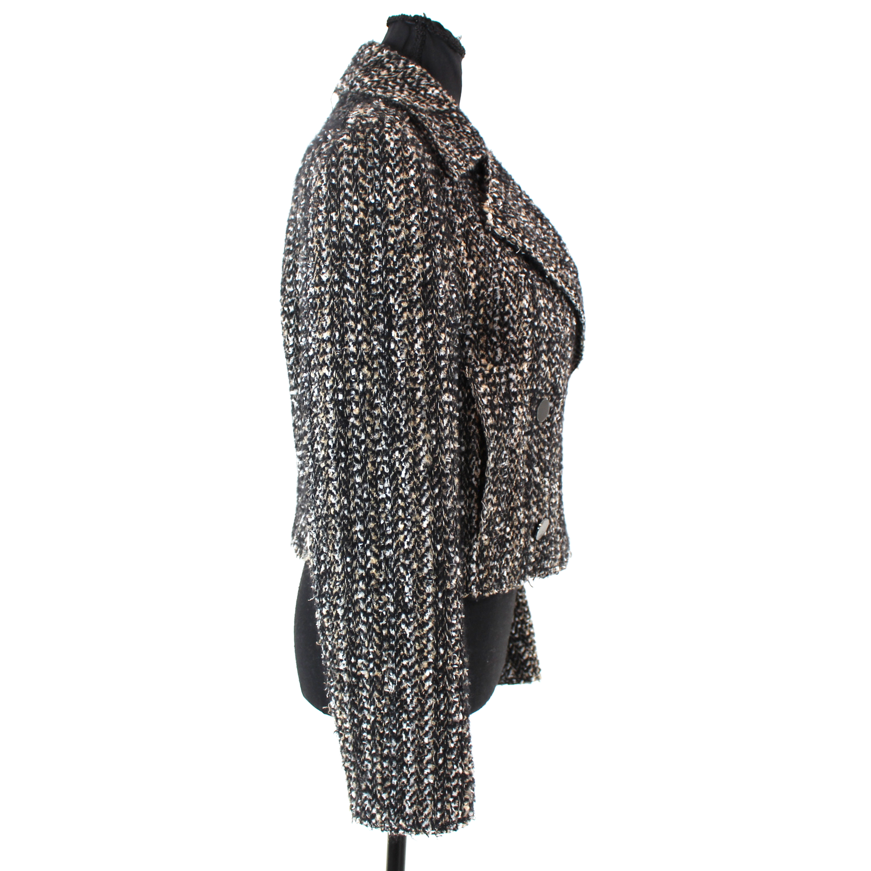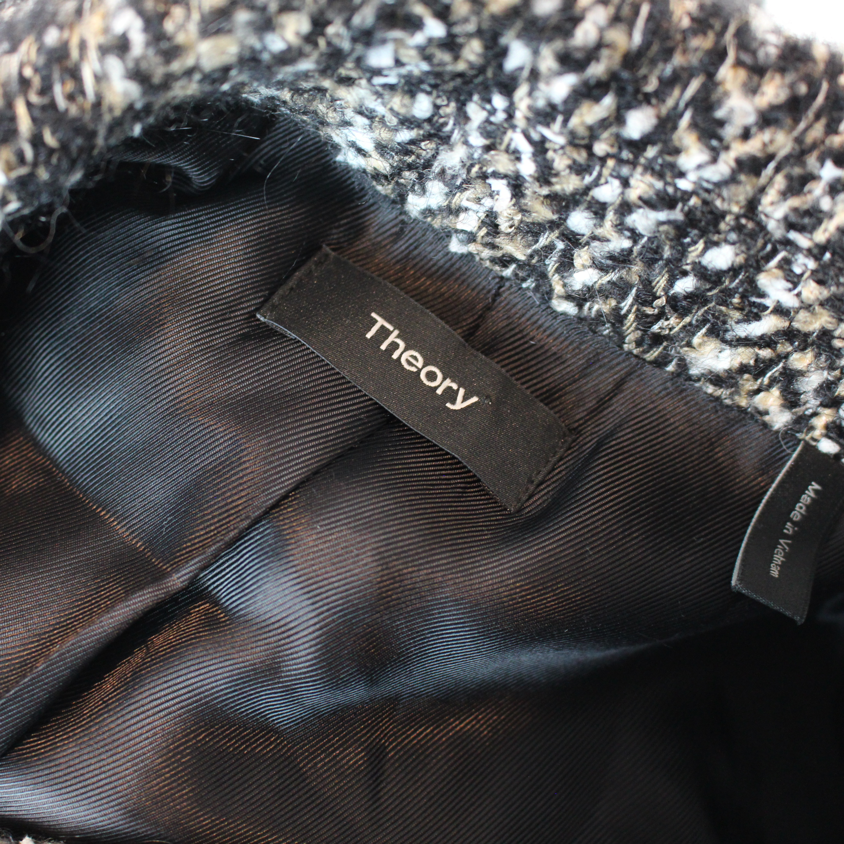 Theory Sargent Black Brown Clipped Tweed Cropped Double Breasted Blazer