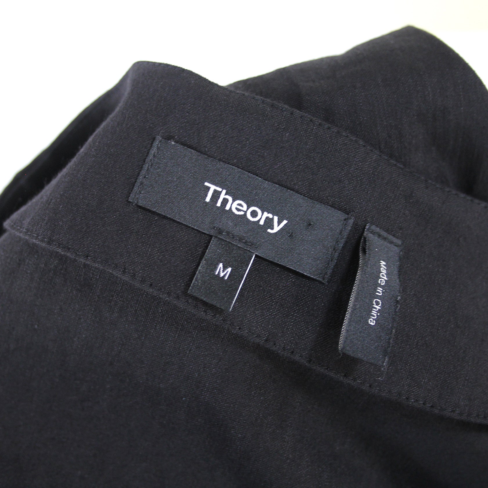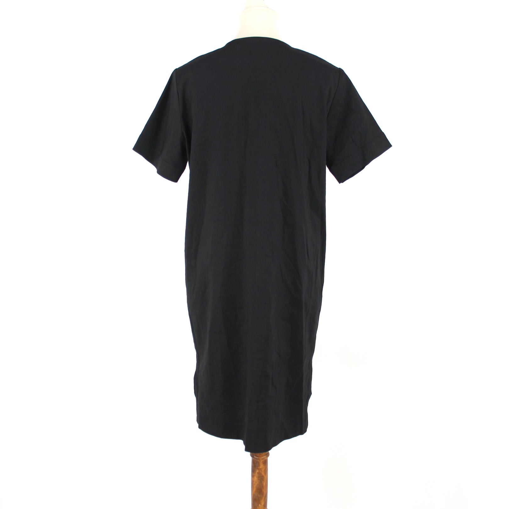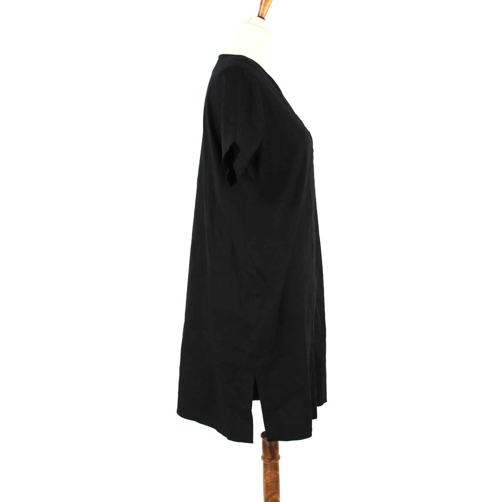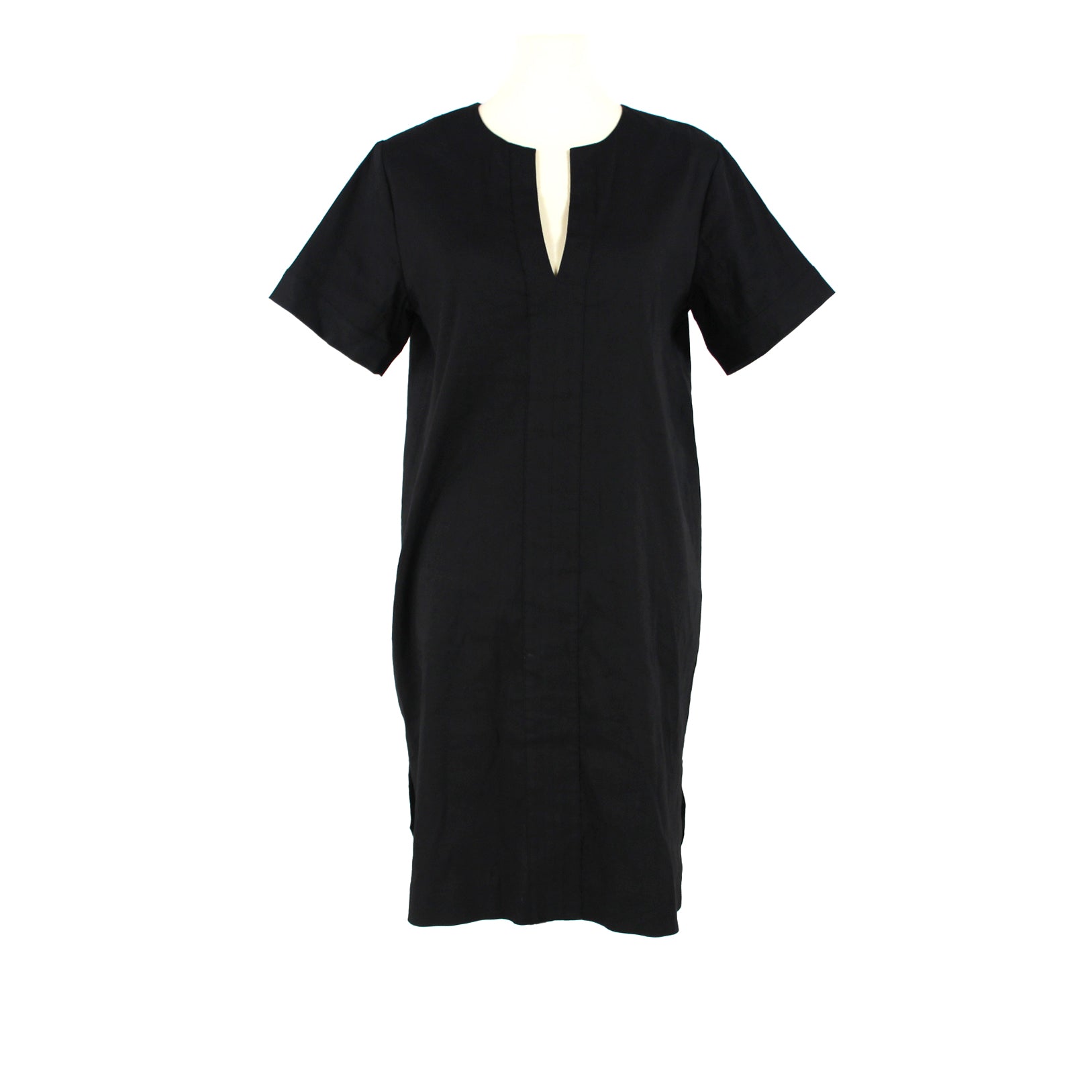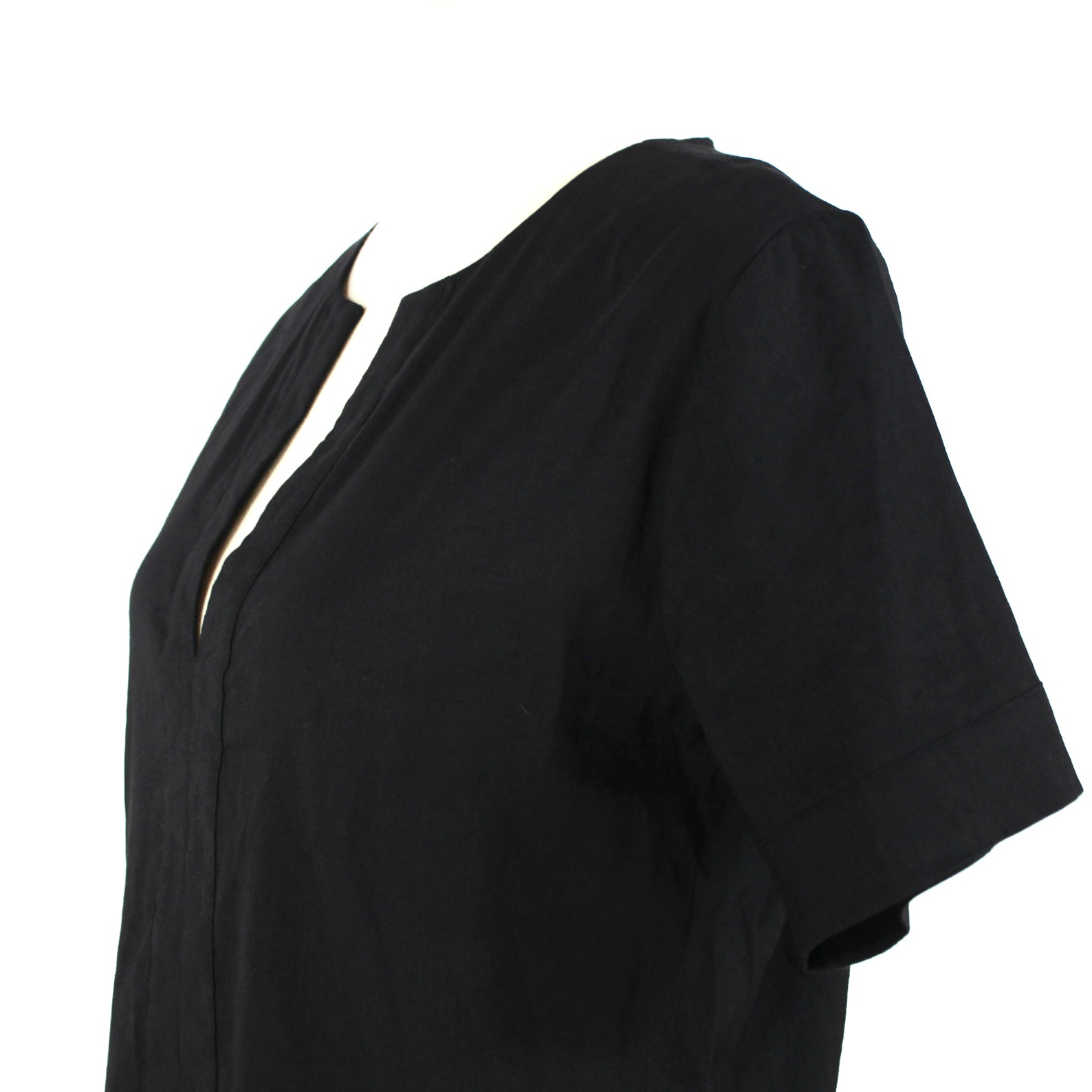 Theory Slit Front Black V Neckline Short Sleeve Linen Blend Shift Dress
