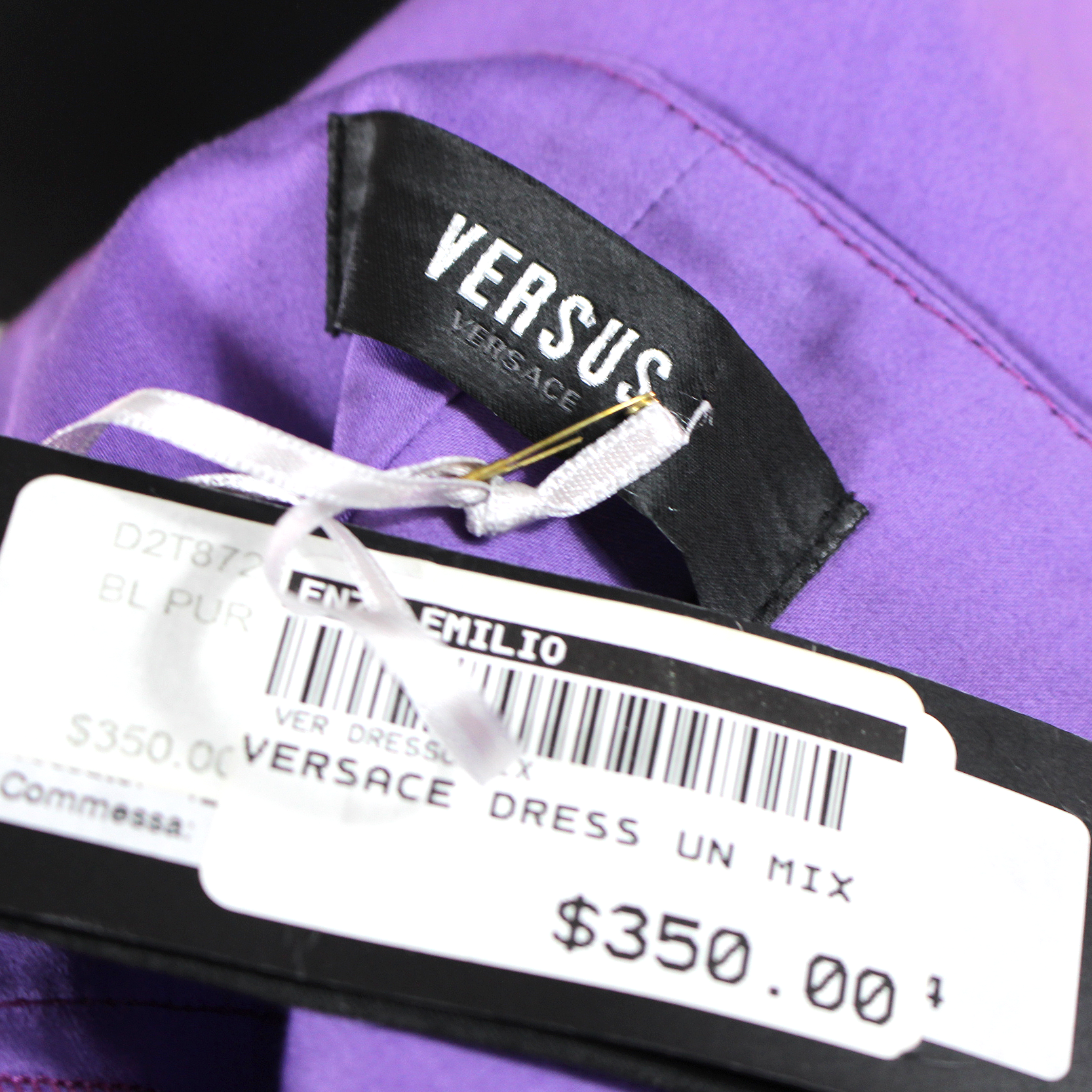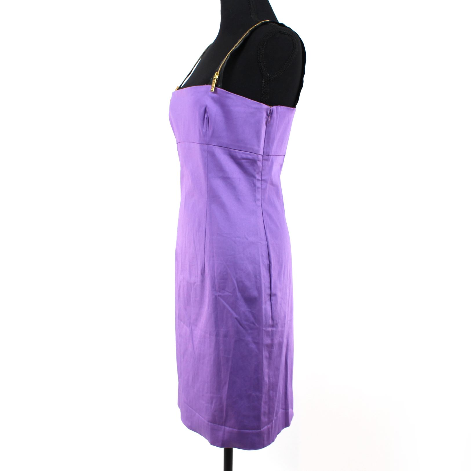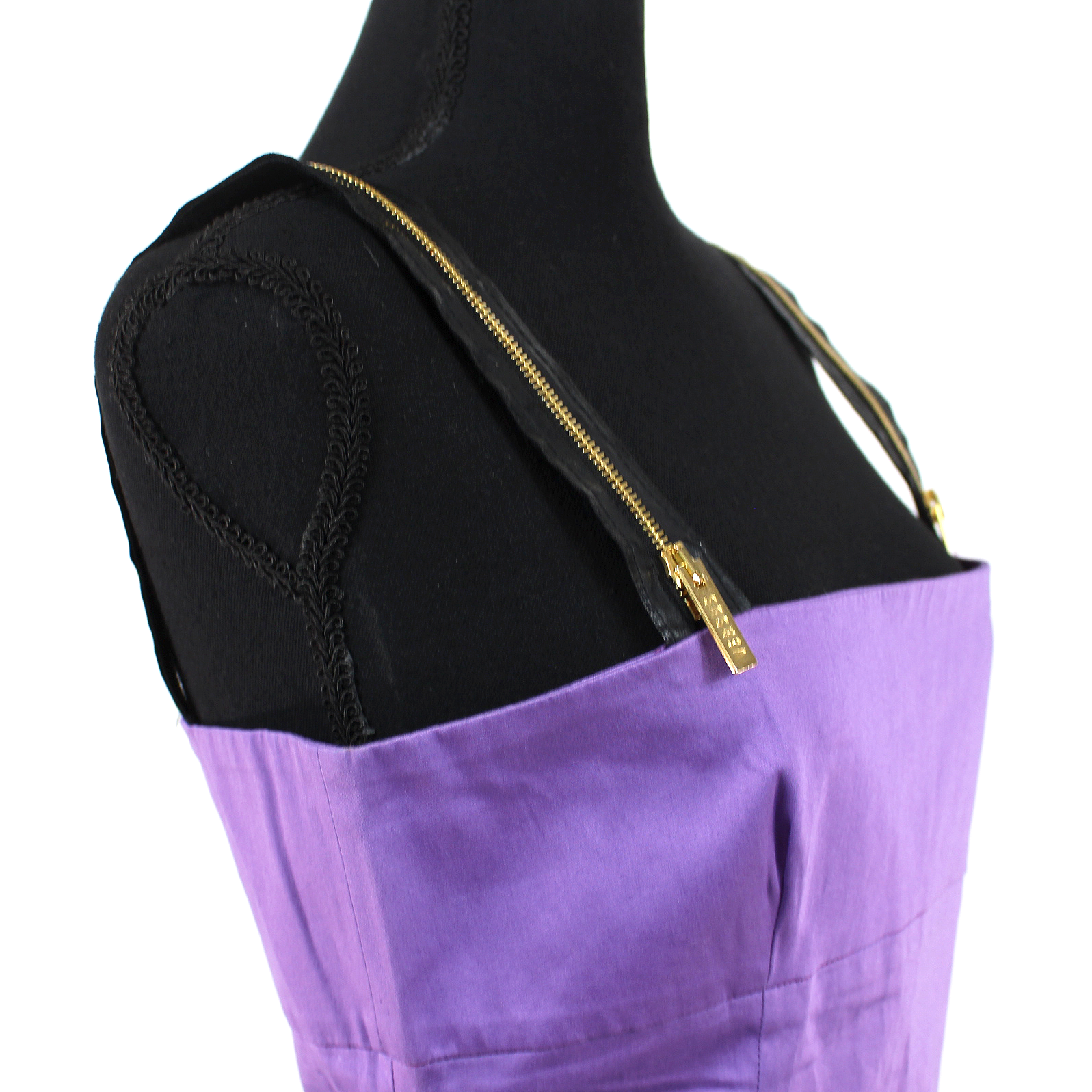 Versus Versace Purple Poplin Cotton Black Zipper Shoulder Mini Dress