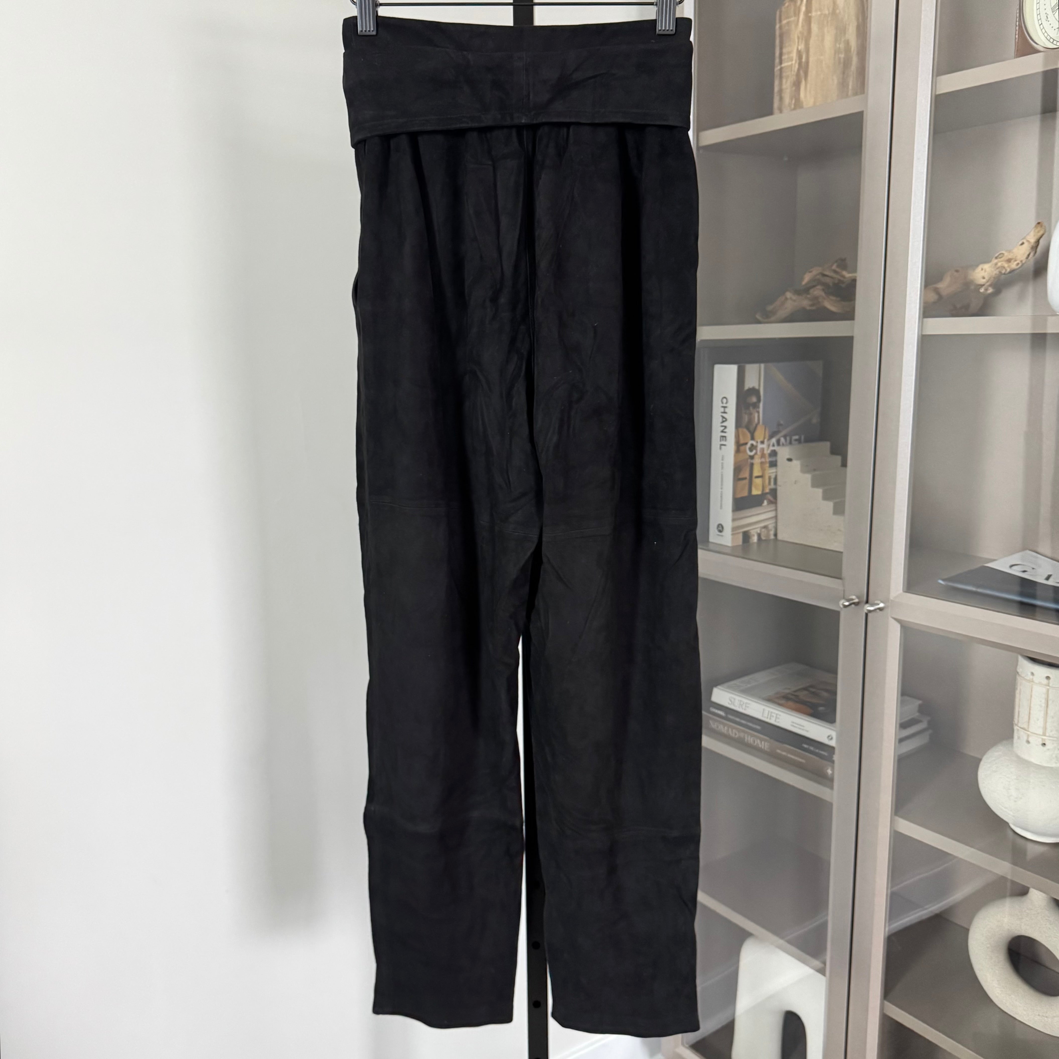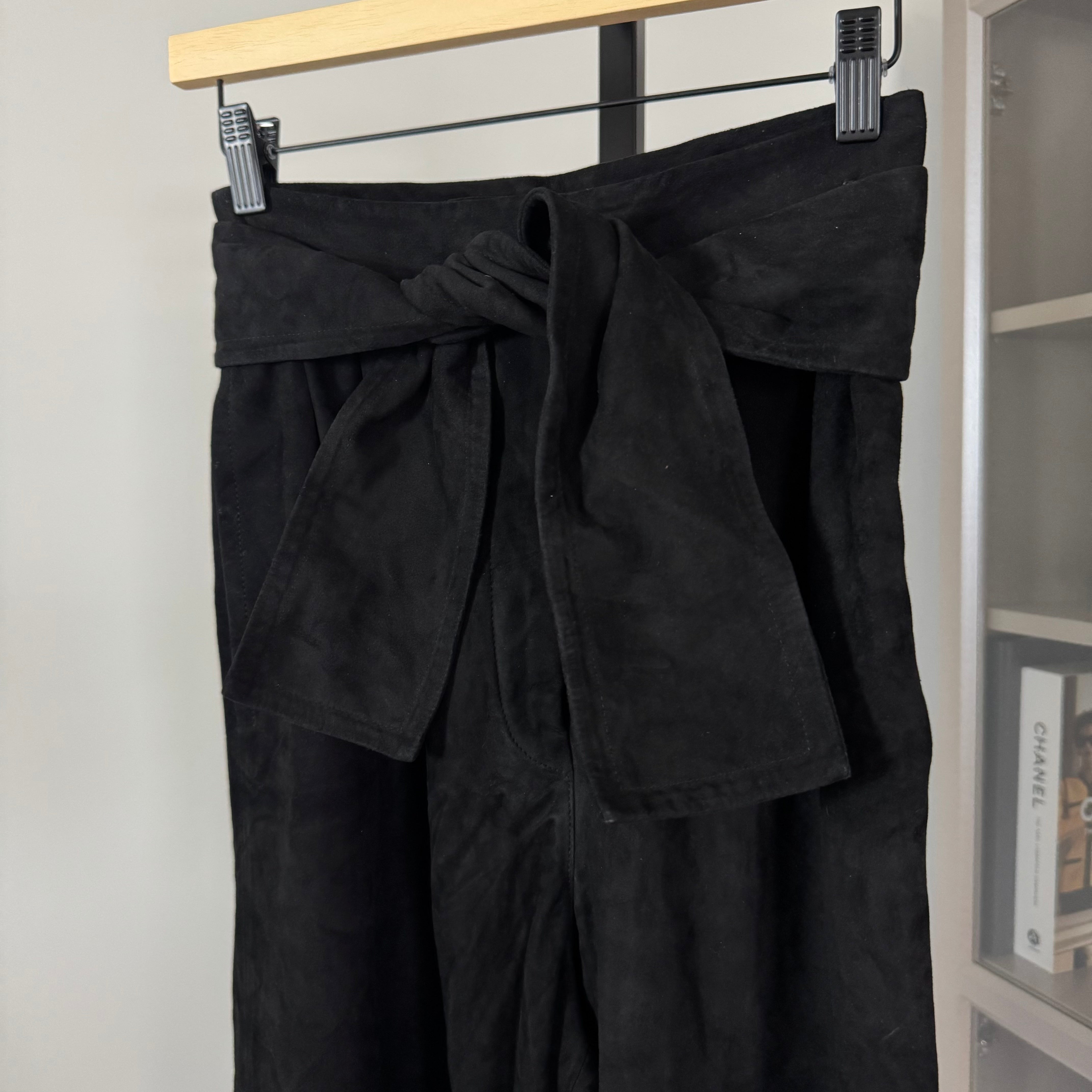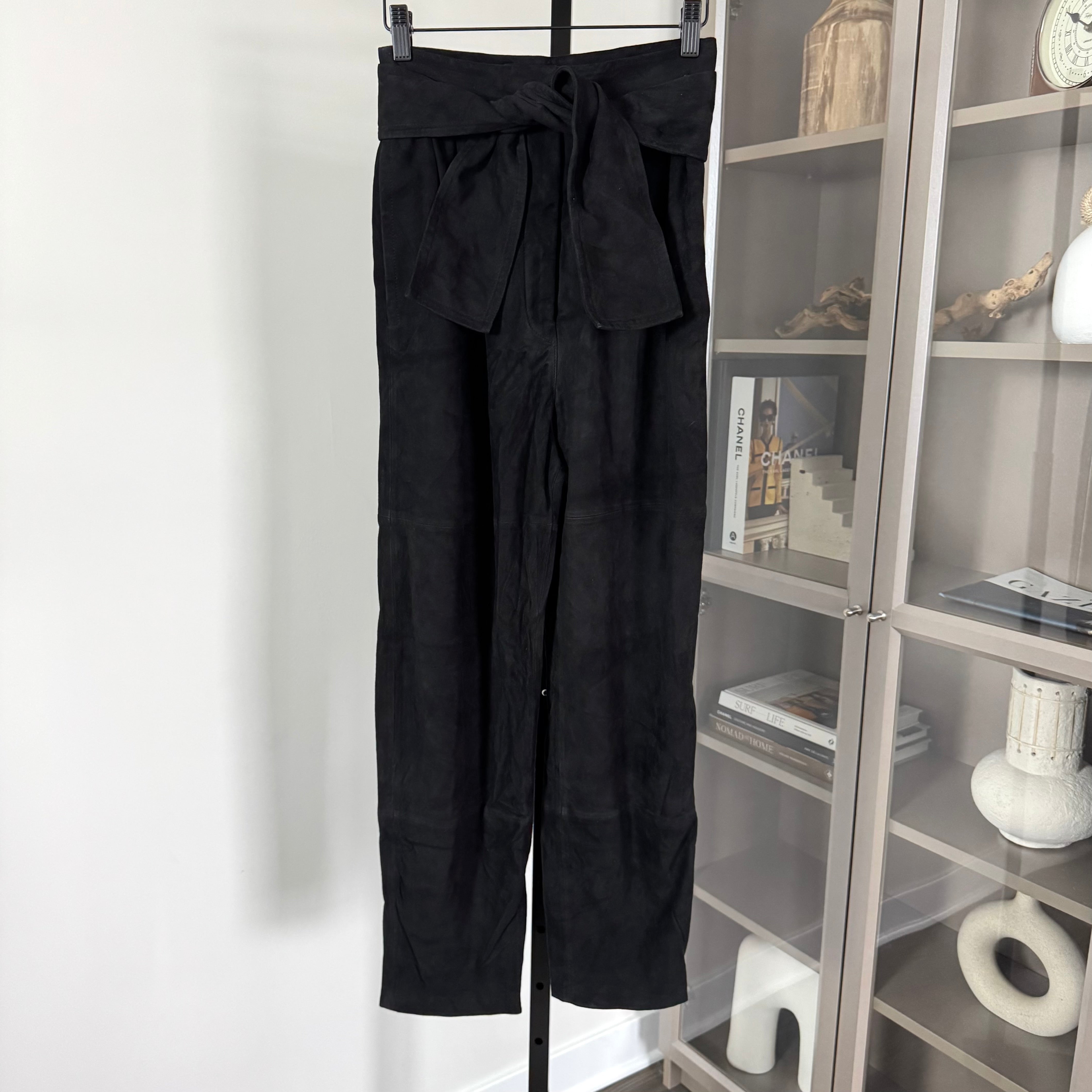 Zimmermann Suede Black Leather Belted High Rise Pants